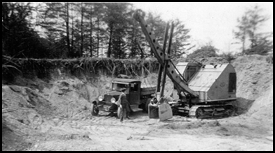 There was a number of operators in the Kingstowne area, the largest of which was Northern Virginia Sand and Gravel, which operated in tandem with Virginia Concrete. Clarence Jones, George Dodd, Marshall Gorham, Addie Tyler and others were involved in the area. At the corner of Beulah Road and Telegraph Road was the Gailliot property, the site of a poultry operation during World War II, then a gravel pit, then a landfill and now a burgeoning commercial center with a golf course built on the landfill. What is now Beulah Park was an extension of the large mining operation in that area of the original intersection of Beulah Road and Hayfield Road.